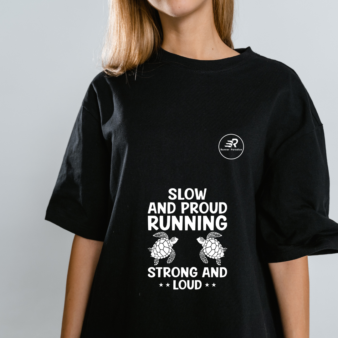 Conquer the pavement in style with our Inspiring Runner T-Shirts! Made from high-performance, moisture-wicking polyester fabric, these shirts deliver exceptional breathability and comfort, ensuring you stay cool and dry throughout your runs. With a modern fit and flattering silhouette, our tagless non-branded shirts guarantee maximum comfort and zero distractions. Choose from a variety of inspiring slogans, like 'Slow And Proud Running Strong And Loud', designed to keep you motivated on your running journey. Shop now and make a statement while achieving your running goals!"